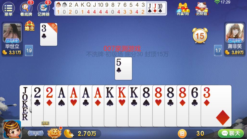 观察对手:观察对手的出牌方式和表情,可以判断对手的心态和可能的牌面。