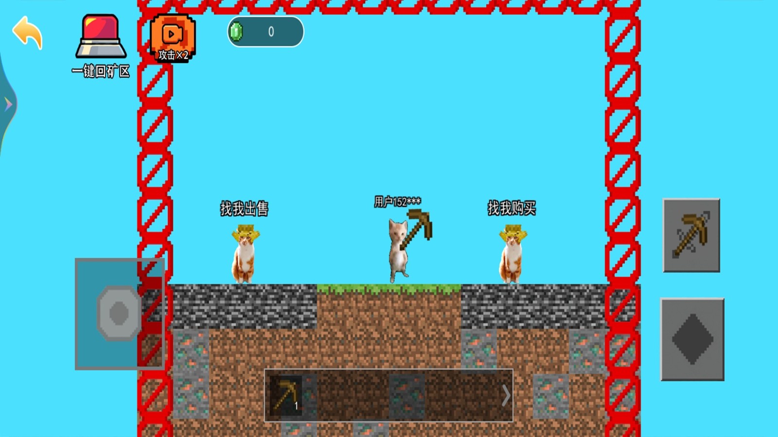 1、左侧按钮控制哈基米移动,右边上面的可以进行挖掘,下面是跳跃。