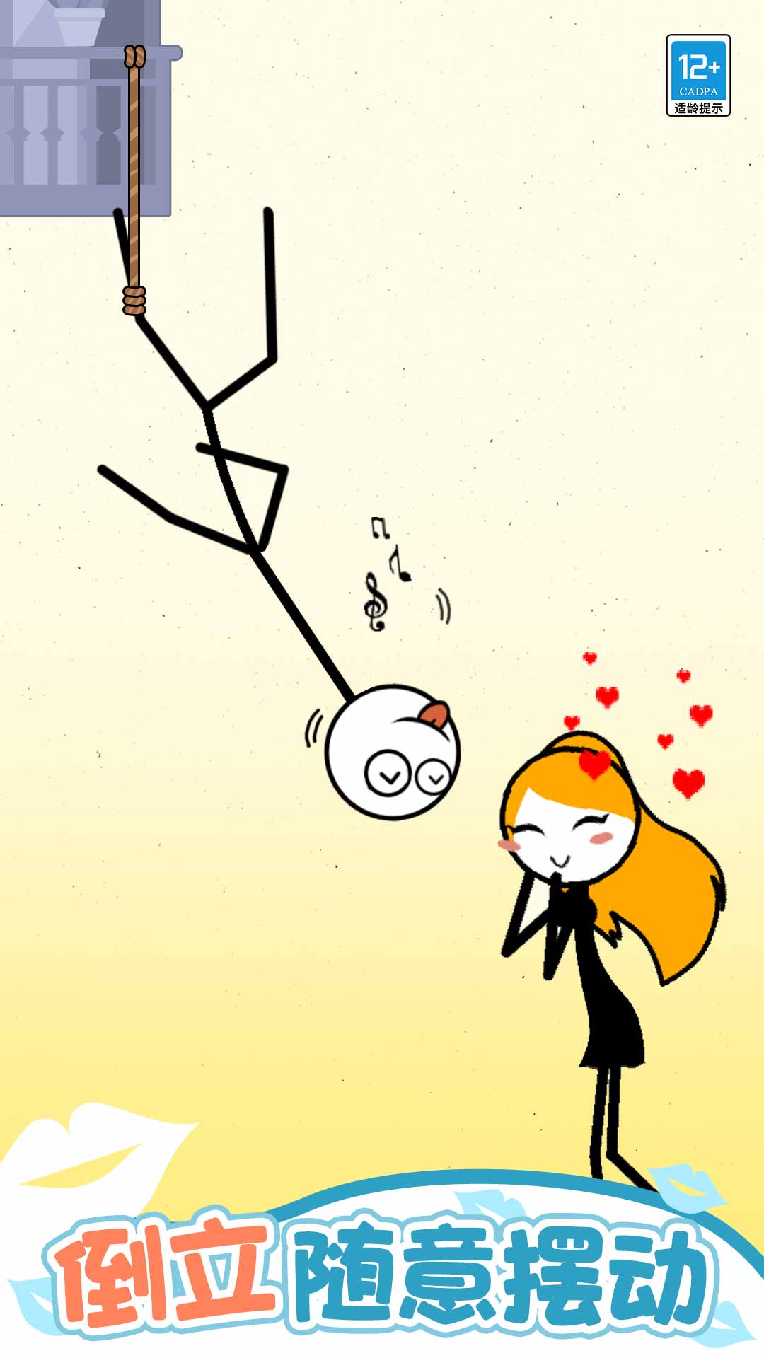 2、这一关有点高难度,有一个人需要倒立着在可以成功的与另一个角色碰撞在一起。