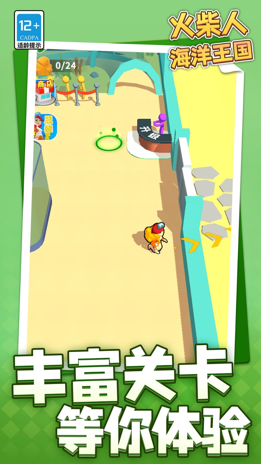 火柴人海洋王国游戏是一款自由度很高的海洋冒险游戏,在这里,你可以自由收集海洋生物,然后完成各种建设,之后就能打造属于自己的海洋王国,整体操作没啥难度,你只需要不断的点击,去完成各种工作,就可以兑换很多的物品,照顾好王国里的海洋生物!