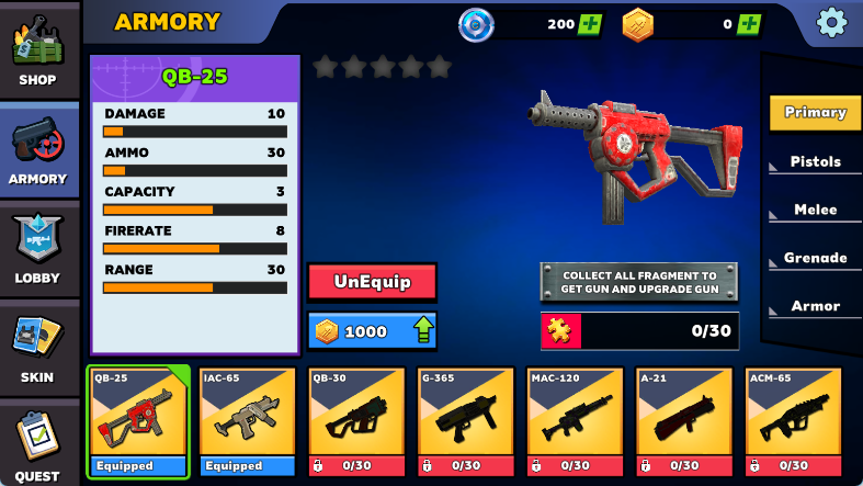 4、战斗界面看下方武器栏,红箭头指向的10/30等格子,对应武器弹药状态可操作切换使用。