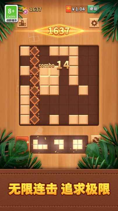 1、核心遵循俄罗斯方块基础规则,通过旋转与移动木质方块,使同色相邻方块连接消除获取分数。