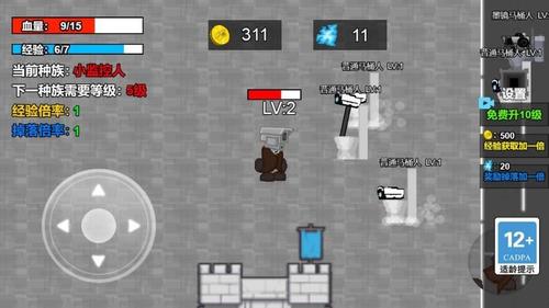 马桶人模拟战是融合进化、战斗与升级元素的休闲冒险游戏,玩家操控监控人在战场中对抗马桶人,通过击败敌人获取经验,提升等级并进化为更高级种族,解锁强力技能与装备,体验爽快战斗与成长乐趣。
