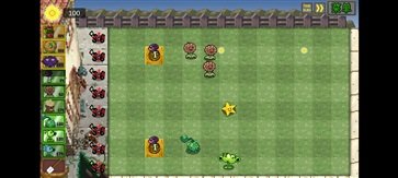 3.游戏中所有的输出都需要胆小菇,在这里需要利用传送带的植物进行子弹转移。